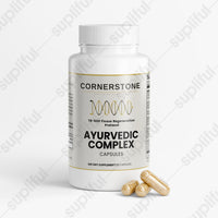 THE FORMULA Ayurvedic Complex was chosen for TB-500 because no single-ingredient product covers the breadth of what this protocol demands. Ashwagandha (125mg, 2.5% extract) provides adaptogenic fatigue support for the metabolic resource drain of systemic repair. Turmeric (150mg, 95% curcuminoids) addresses the inflammatory load of simultaneous multi-tissue regeneration. Brahmi/Bacopa (75mg, 20% extract) supports cognitive function during the immune resource reallocation phase. Shilajit (25mg) provides mineral transport to support VEGF angiogenesis. Triphala (50mg) maintains gut integrity during the loading phase. Trikatu with Ginger manages the nausea that loading doses cause.